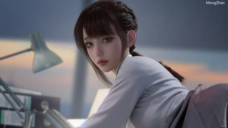游戏背景纤细笔直的双腿穿着黑丝,白色衬衫大开,