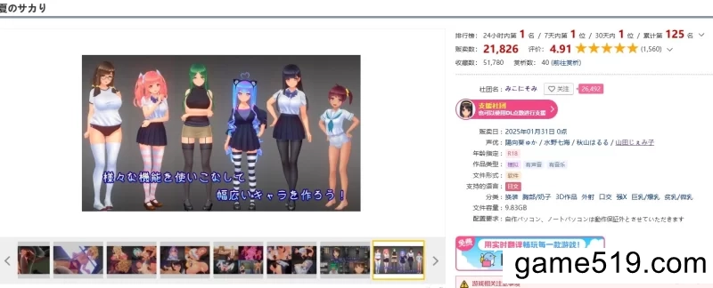 4位女主全程CV,可捏人,可换服装,游戏画面和优化极佳,2G显存4G运行内存就能畅玩