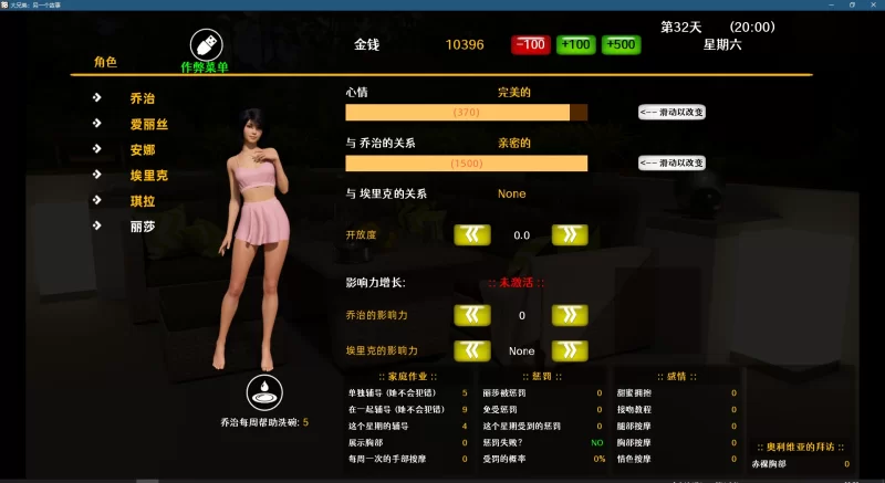 4、进入游戏后,在左上角点击人物造型图标,会进入人物关系界面,此时你就能看到作弊开关,点击后进入作弊页面,可以调整各种数据;
