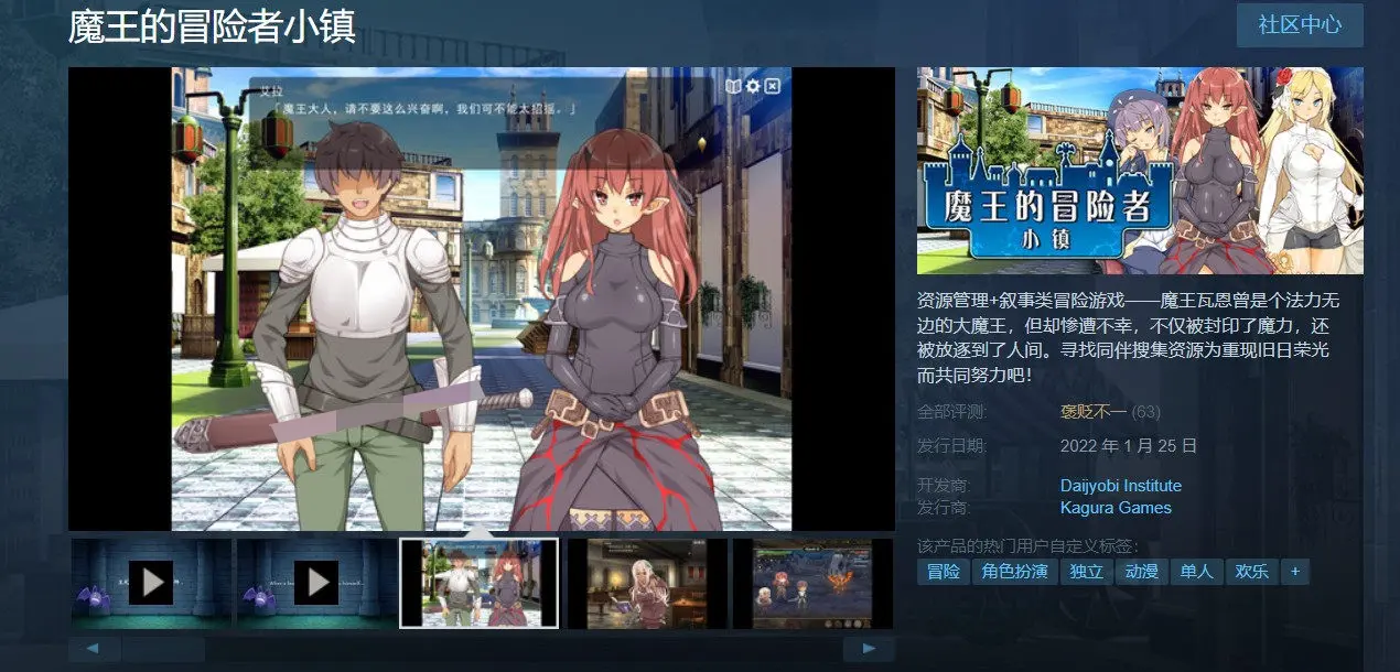 ·非常有趣的SLG游戏,曾经的魔王变成了一个小小的冒险者,在这个奇妙的世界里,你需要操心各种东西,钱够不够,有没有吃的,妹子好感度,以及~自己的力量。通过各种行动来获得这些东西吧~